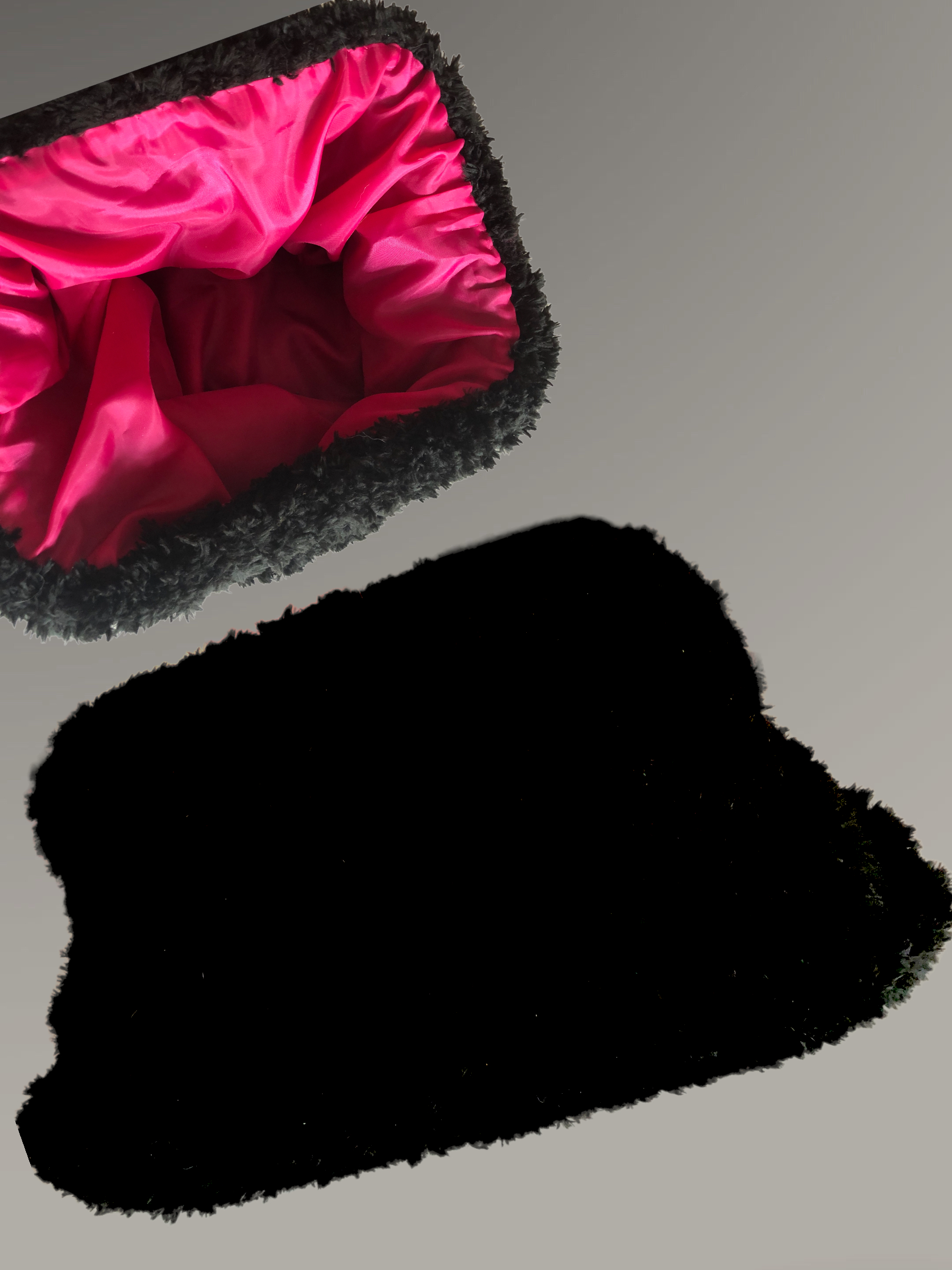 Siyah kadife ip i kullanılmıştır. Gizli metal burs ile güvenli kullanımı sağlanan çantanın içi oldukça geniştir.Bu nedenle kullanımı rahattır..İçinde kullanılan,pembe astar çantanın dikkat çekici bir diğer özelliği.