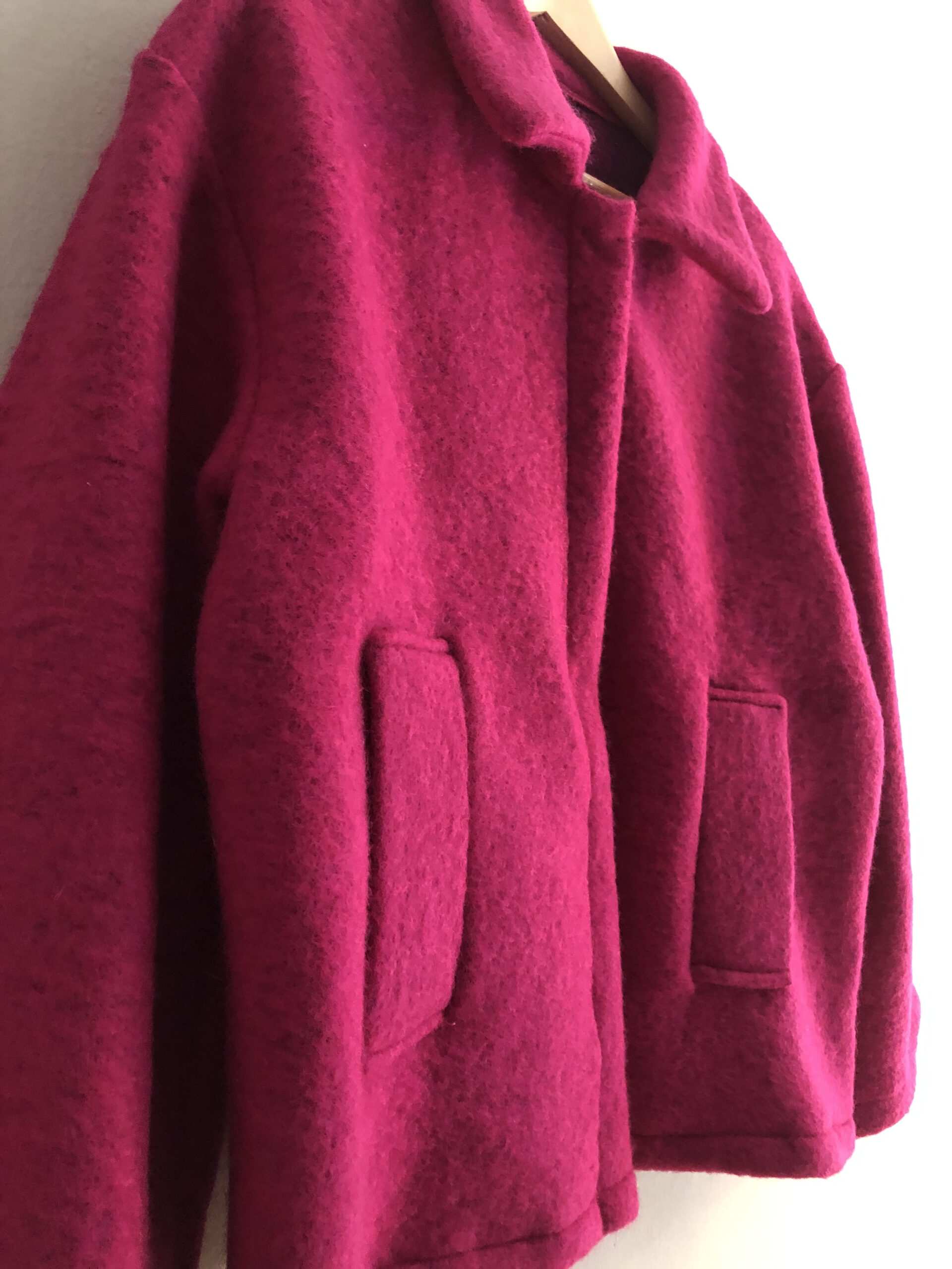 Sırt: 60 cm Kol Boyu: 50 cm Boy: 65 cm, önden çıtçıtlı, gizli cepli.