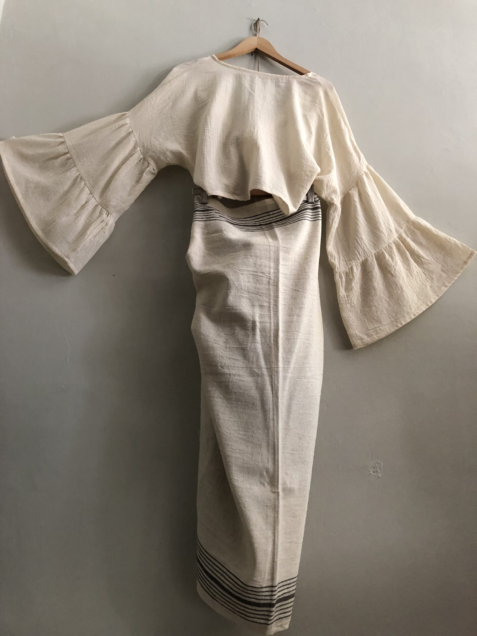 Rahatlık ve şıklığı bir arada sunan Atölye1İstanbul Pareo Etek modeli özel olarak tasarlanmıştır. Geleneksel dokuma tezgahlarında dokunmuş kumaşın kullanılması ile Sürdürülebilir Moda (Eco Fashion) anlayışına uygun olarak hazırlanmıştır.
