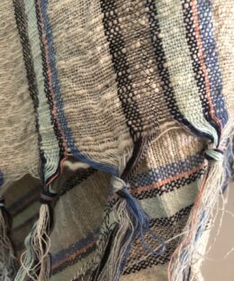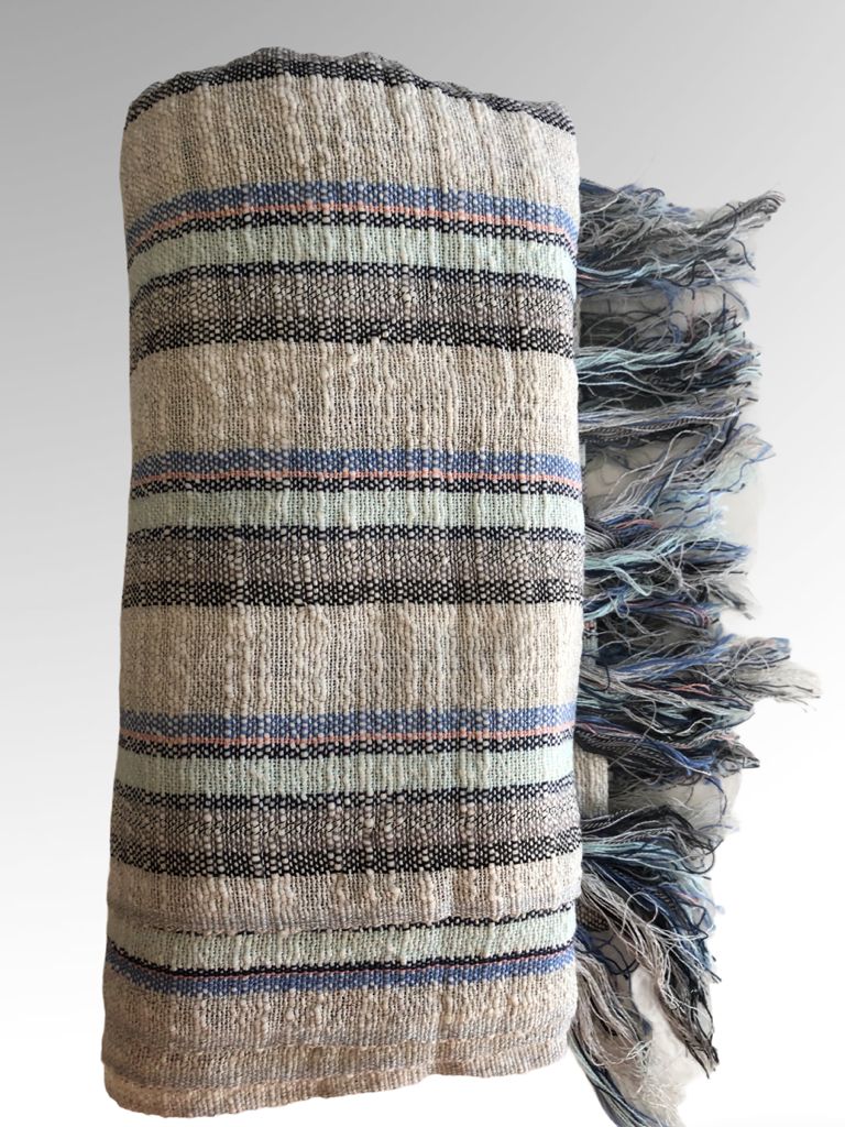 Bu ürünün kumaşı, geleneksel kara tezgahlarda, 10’lu tarakta pamuk ve keten ipliklerle özel olarak dokunmuştur. 1 cm dokumada 9 ilmek vardır. Püskülleri %100 el yapımıdır.