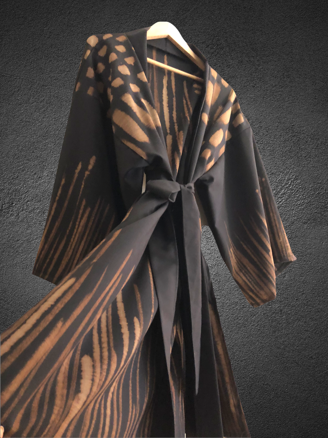 Atölye1İstanbul tarafından tasarlanmış kimono, farklı boyama tekniği ile renklendirilmiş ve tek adet olarak koleksiyonumuzda yer almaktadır.