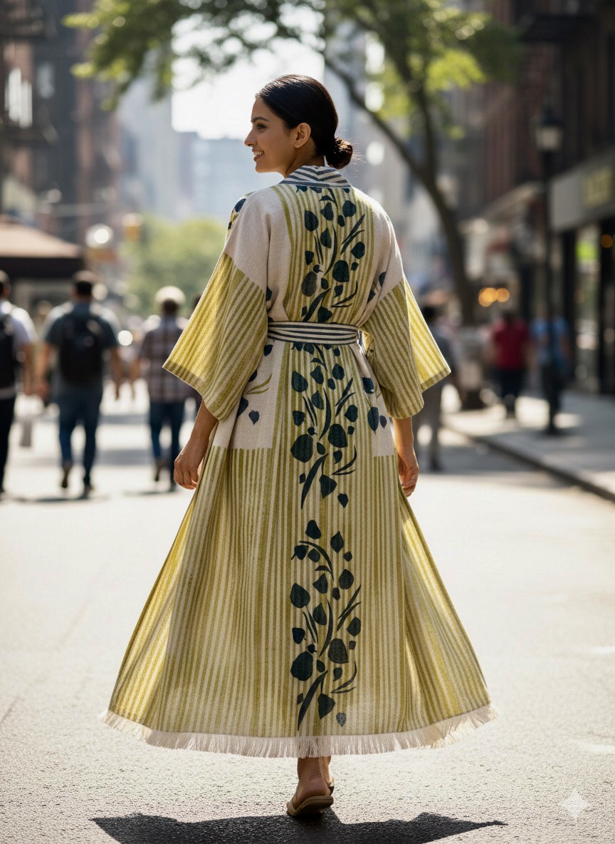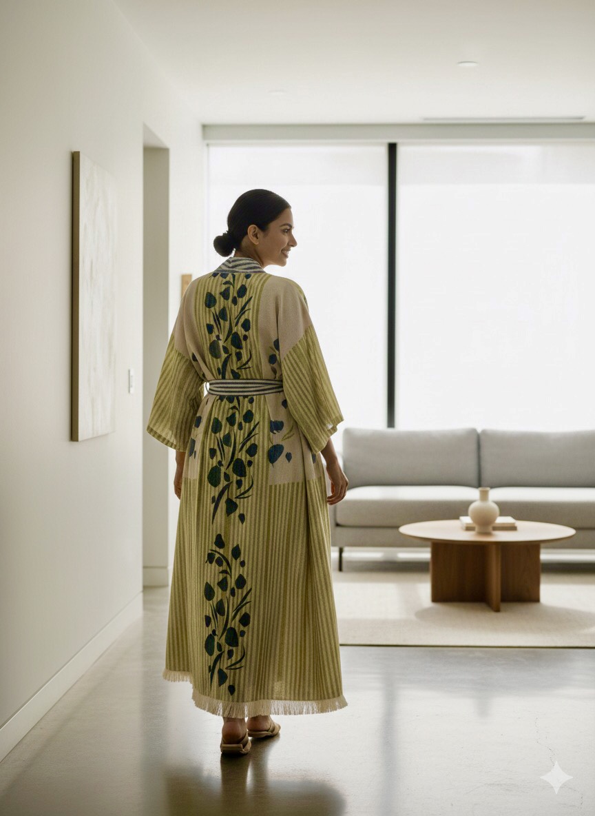 * Tamamen Benzersiz: Her bir desen el baskısı ile tek tek işlendiği için bu kaftandan dünyada sadece bir tane var.
