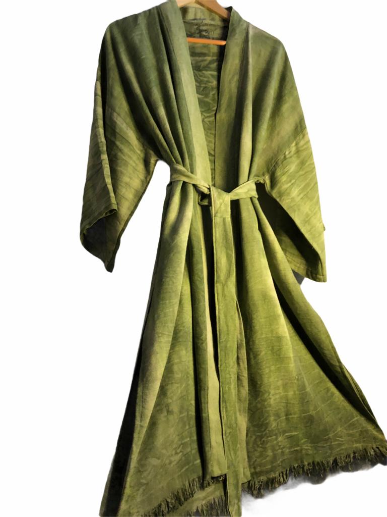 GOTS® ve OEKO-TEX®100 sertifikalı ekolojik Atölye1İstanbul boyaları ile “Batik” tekniği kullanılarak boyanmıştır. Bu özellik Kimono’yu kişiye özel bir ürün yapmaktadır.