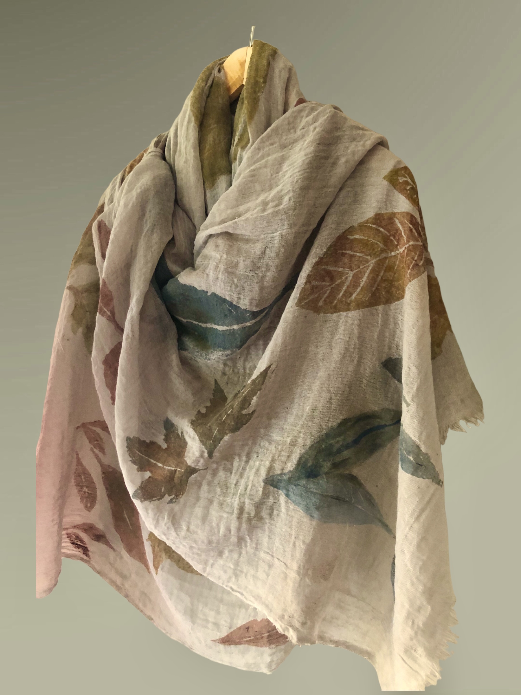 Üzerindeki yaprak desenleri gerçek yaprakların kalıbı çıkarılarak el baskısı ile